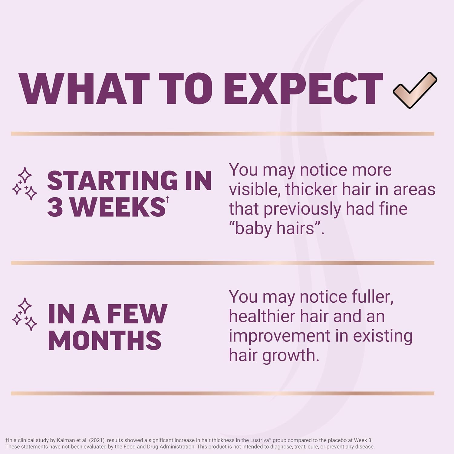 Svar 1: Resultat kan vanligtvis ses redan inom tre veckor av regelbundet intag av produkten, tack vare den patenterade blandningen av Lustriva™ och biotin som ger snabb verkan.